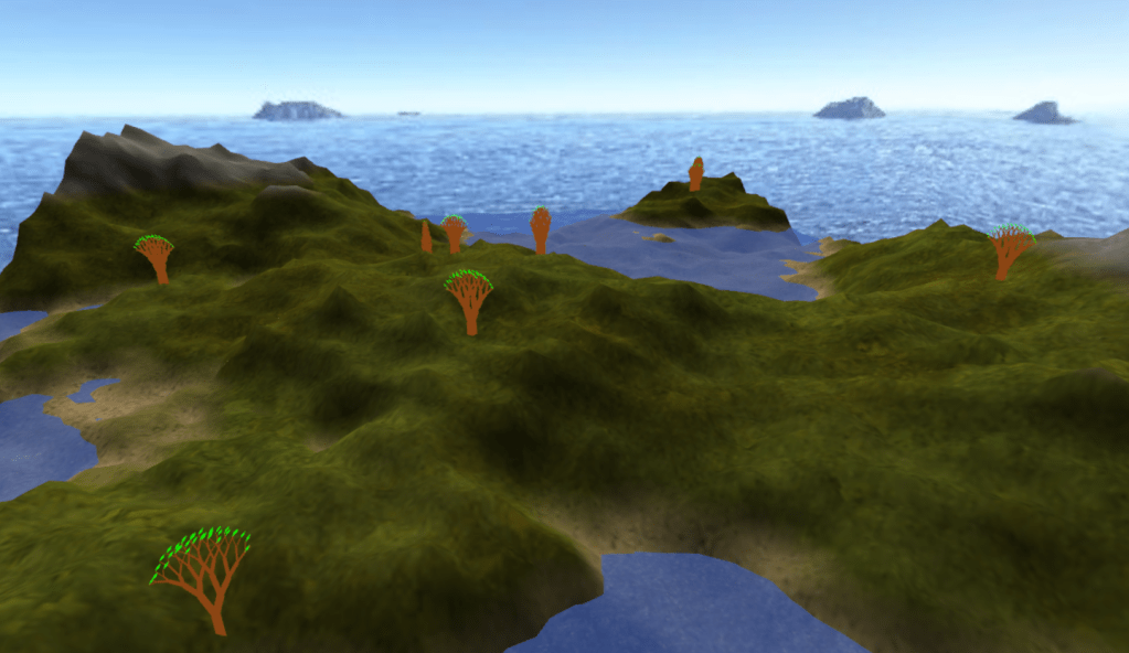 This project was looking into how terrain and it’s environment can be created based on rules and dynamic techniques. This was done with SDL and OpenGL in C++. The terrain is formed by the diamond-square method. The trees were instanced rendered, meaning that many objects can be drawn in a few draw calls.