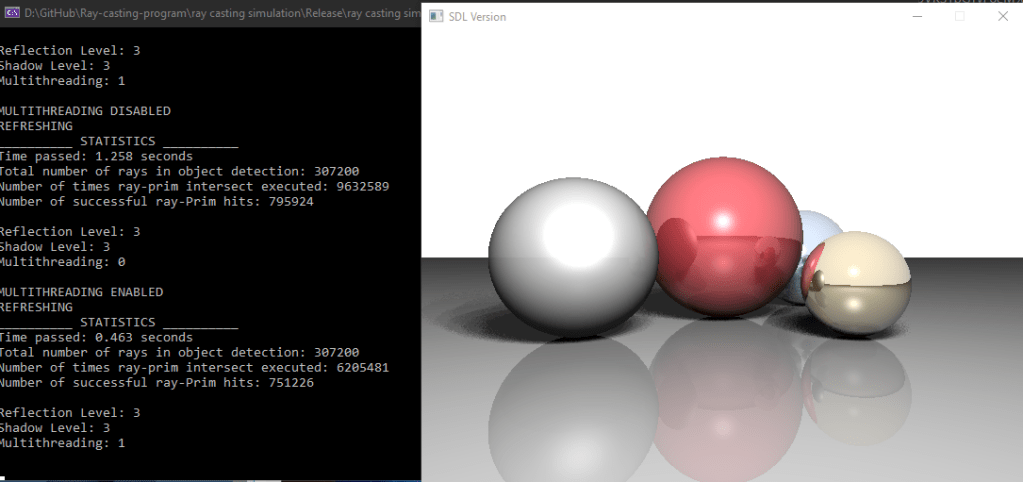 - This program is able to simulate multiple, unique models with various levels of Shadows and reflections.